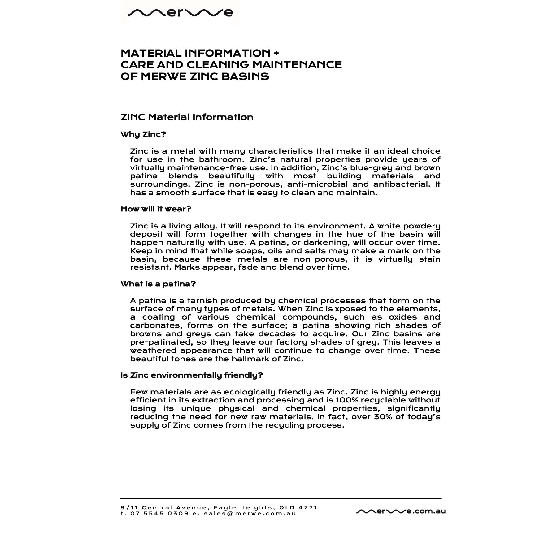- All Bronze and Zinc basins manufactured in Australia